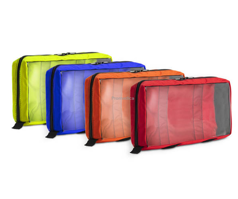 Saszetki segregacyjne w czterech kolorach wykonane z tkaniny wodoodpornej i bardzo łatwo zmywalnej. Wierzch z folii wysoko przezroczystej pozwala na łatwy przegląd ich zawartości, a mocowanie na rzep znajdujące się od spodu saszetki pozwala na ulokowanie ich w odpowiednim miejscu. Zamykane na suwak . Użyte materiały: nici rdzeniowe COATS EPIC, łatwo zmywalny materiał NYLON oraz mocna WDP, gwarantują niespotykaną dotąd odporność na przetarcia i rozerwania.