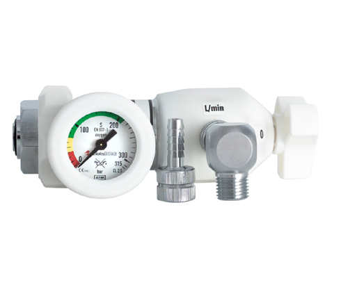 Reduktor tlenowy z króćcem i złączem AGA przeznaczony jest do pracy z butlą z tlenem medycznym. Zastosowanie korpusu z wytrzymałego tworzywa sztucznego pozwoliło zmniejszyć masę reduktora bez utraty jakości oraz parametrów użytkowych. Wykorzystywany jest do zredukowania/zmniejszania ciśnienia pobieranego tlenu z butli, którego wartość można zobaczyć na czytelnym manometrze. Posiada standardowe przyłącze do butli tlenowej DIN G3/4″. Reduktor służy do dystrybucji tlenu ze stałą wielkością przepływu, maksymalnie do 25 l/min. Istnieje możliwość podłączenia go do dozownika tlenu, respiratora lub przewodu sieci tlenowej w karetce.