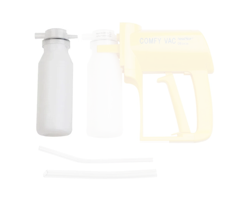 Pojemnik, butla o pojemności 250ml z pokrywką i zaworem jednokierunkowym do ssaka ręcznego mechanicznego, typu pistoletowego marki COMFY VAC.