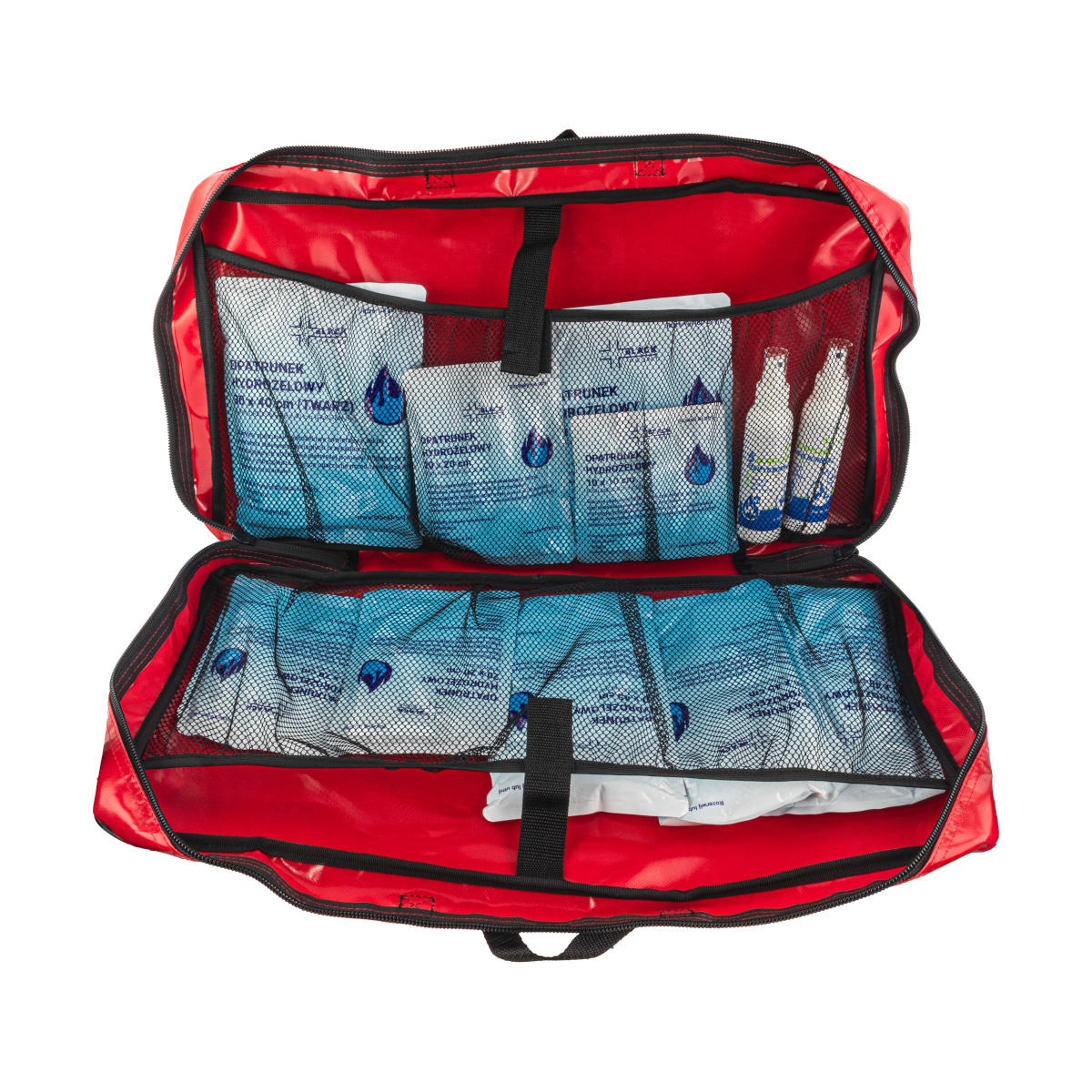 Zestaw opatrunków hydrożelowych zgodnych z wytycznymi KSRG z 2021 roku. Zestaw zawiera specjalistyczne opatrunki hydrożelowe marki Longbow, które skutecznie przeciwdziałają negatywnym skutkom oparzenia, łagodzą ból i przyśpieszają gojenie rany. Podstawowe wyposażenie apteczek oraz zestawów ratowniczych dla przeciwdziałania skutkom oparzeń w pomocy przedszpitalnej. Zestaw umieszczony w torbie transportowej.