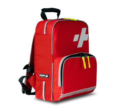 Jednokomorowy plecak medyczny posiada w środku sześć kieszeni zamykanych klapką na rzep, dwie kieszenie z siatki raz uchwyty gumowe. Z przodu plecaka znajduje się pojemna kieszeń na dodatkowe wyposażenie.. Szelki profilowane, opiankowane, spinane pasem piersiowym. Gumowa rączka do trzymania apteczki w ręku. Apteczka jest cała opiankowana, zamykana na zamek błyskawiczny. Całość torby uzupełniają elementy odblaskowe, które znacząco poprawiają widoczność ratownika w nocy.