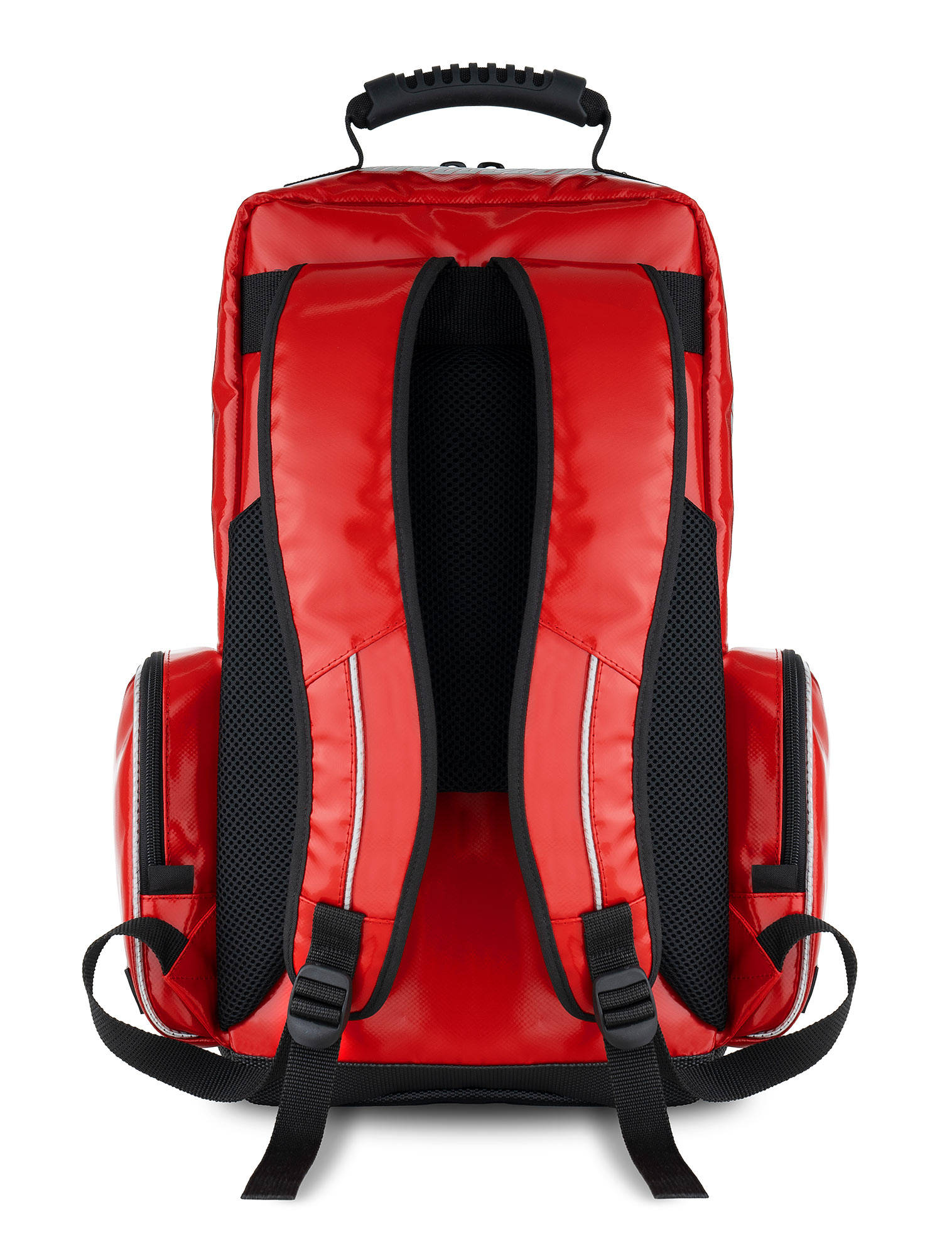 MB-30 - apteczka plecakowa o pojemności 32l, wykonana z wytrzymałego i wodoodpornego materiału Plan. Wnętrze torby wykonane z łatwo zmywalnego Nylonu 210D. Suwak od komory głównej wykonany na całej wysokości plecak zapewnia łatwy dostęp do rzeczy znajdujących się w jego wnętrzu. Plecak posiada komorę główną oraz trzy kieszenie zewnętrzne. W komorze głównej znajdują się cztery saszetki segregacyjne, sześć otwartych kieszeni, gumowe uchwyty umożliwiające łatwą segregację zawartości apteczki. Dwie kieszenie boczne, idealne do umieszczenia np. ciśnieniomierza, stetoskopu, pojemnika na zużyte igły itp. Na wierzchu plecaka znajduje się przezroczysta kieszeń zamykana na suwak dla widocznego umieszczenia ważnych informacji i dokumentów. W przedniej kieszeni plecaka znajdują się uchwyty gumowe, kieszeń z siatki oraz rzep do którego przymocować można inne akcesoria. Apteczka wyposażona jest uchwyty przy suwakach wykonane w jaskrawym kolorze rzucające się w oczy pozwalające na łatwe i szybkie otwieranie torby. Plecy usztywnione pianką. Szelki profilowane, opiankowane, spinane regulowanym pasem piersiowym. Dno torby wykonane z czarnej wzmacnianej tkaniny, odpornej na przetarcia, zabezpieczone gumowymi stopkami. Użyte materiały ochraniają torbę przed wilgocią, brudem i uszkodzeniami. Całość plecaka uzupełniają elementy odblaskowe, które znacząco poprawiają widoczność ratownika w nocy.