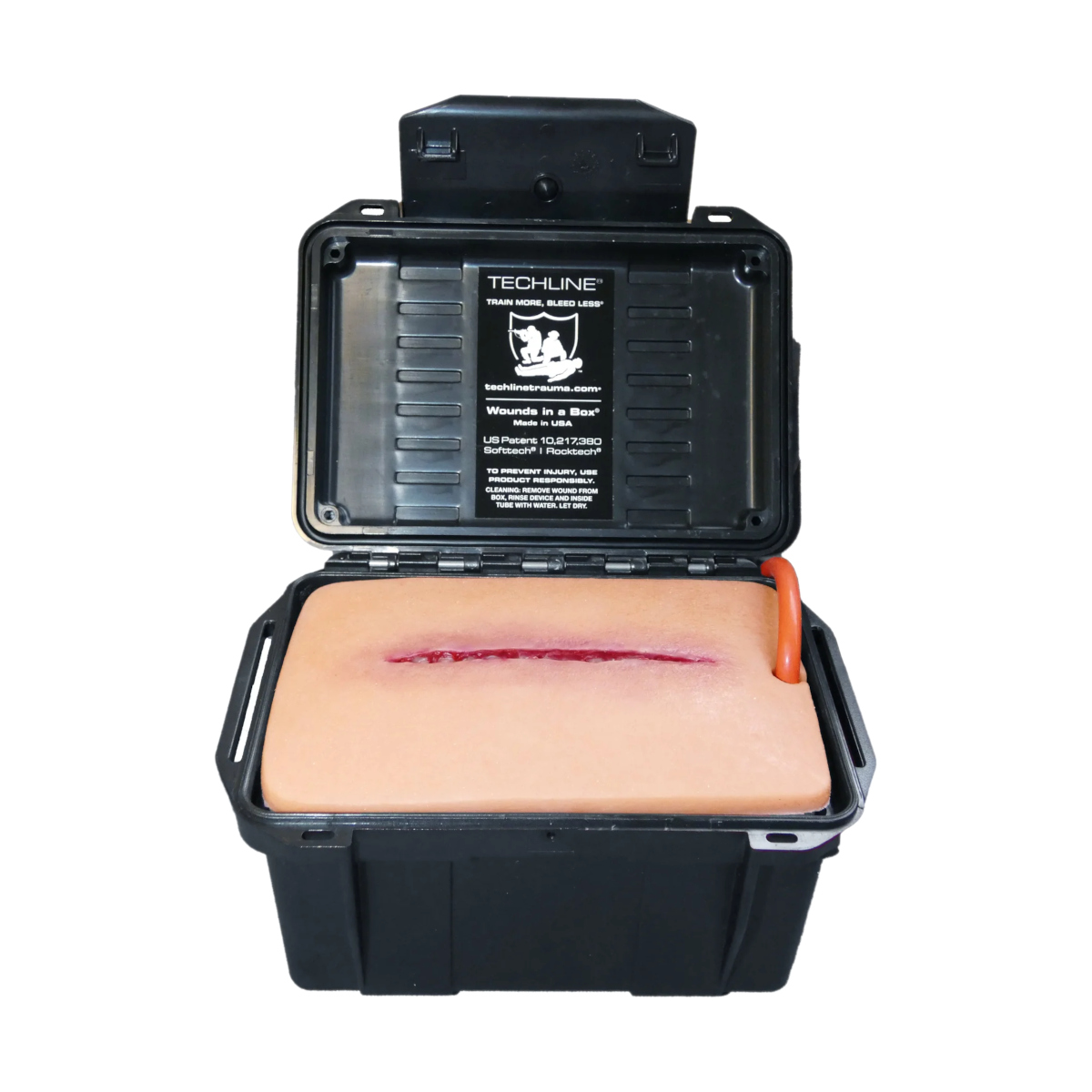 Trenażer tamowania krwotoku Laceration in a Box® firmy Techline Technologies to realistyczny symulator głębokiej rany ciętej tkanek miękkich, przeznaczony do nauki i doskonalenia techniki pakowania ran oraz kontroli masywnego krwotoku podczas szkoleń medycznych i taktycznych. Model pozwala prowadzić praktyczne ćwiczenia z zakresu postępowania w przypadku ciężkich urazów, odwzorowując strukturę i zachowanie prawdziwych tkanek.