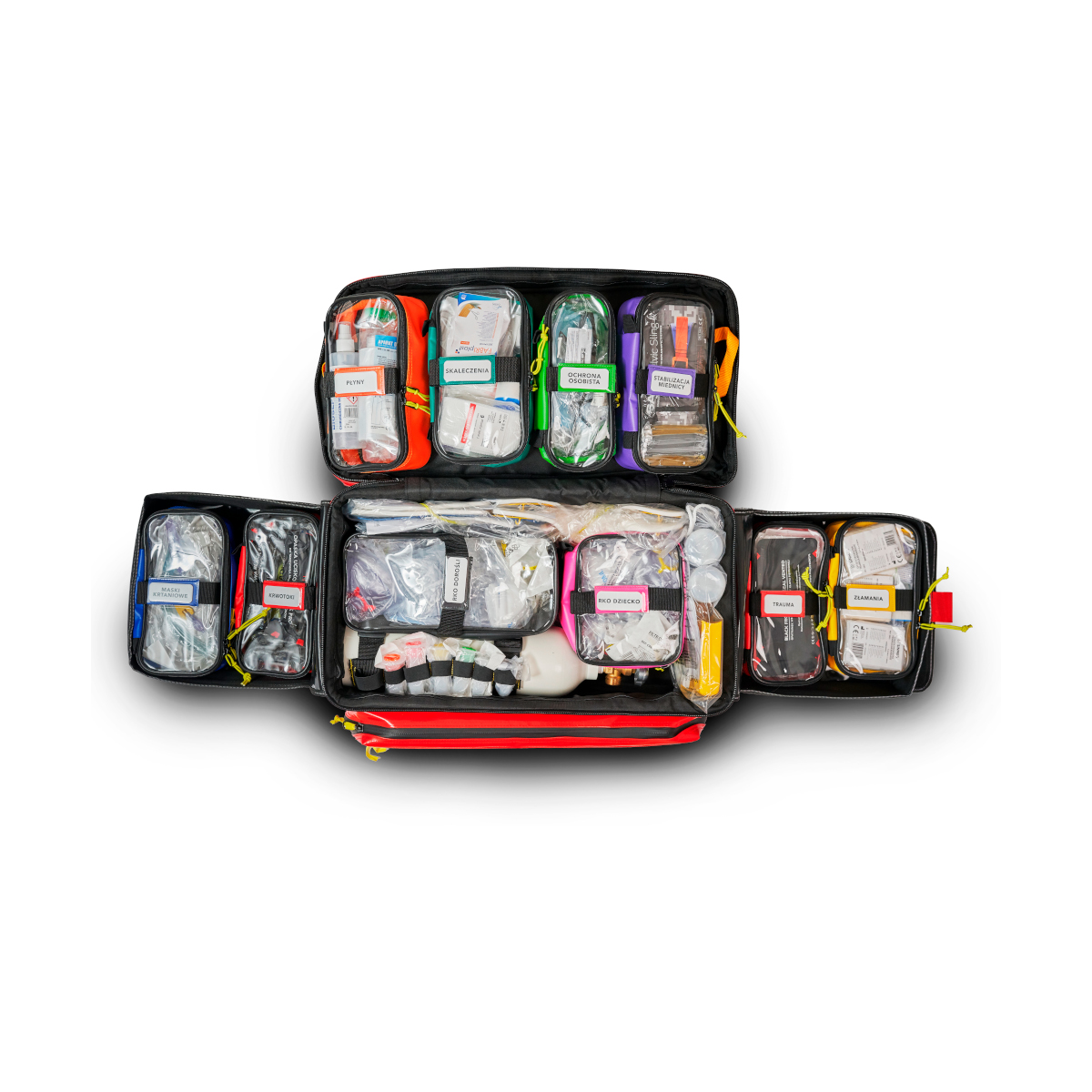 Wyposażenie zestawu PSP R1 wg wytycznych KSRG 02.2026, do wyboru w komplecie lub bez butli/reduktora.