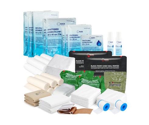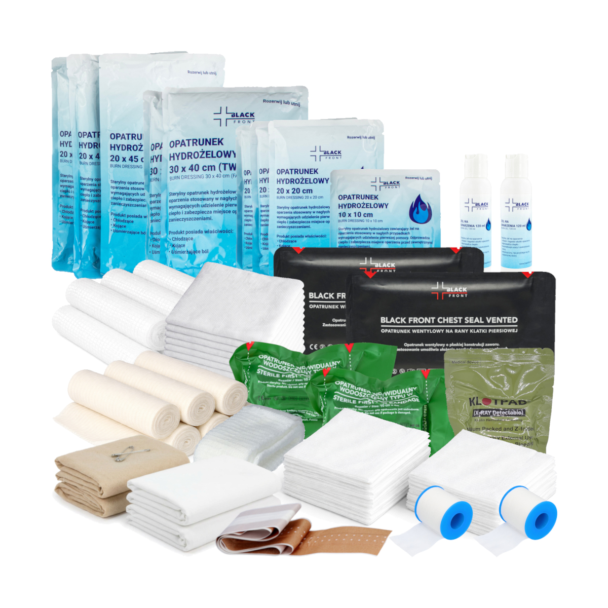 W skład zestawu wchodzą również opatrunki hydrożelowe i żele schładzające przeznaczone do udzielania pomocy przy oparzeniach, opatrunki wentylowe do zabezpieczenia ran ssących klatki piersiowej oraz przylepce umożliwiające szybkie i pewne mocowanie opatrunków. Dzięki tak dobranemu wyposażeniu zestaw pozwala na skuteczne zaopatrzenie najczęściej spotykanych obrażeń urazowych zgodnie z aktualnymi wymaganiami KSRG.